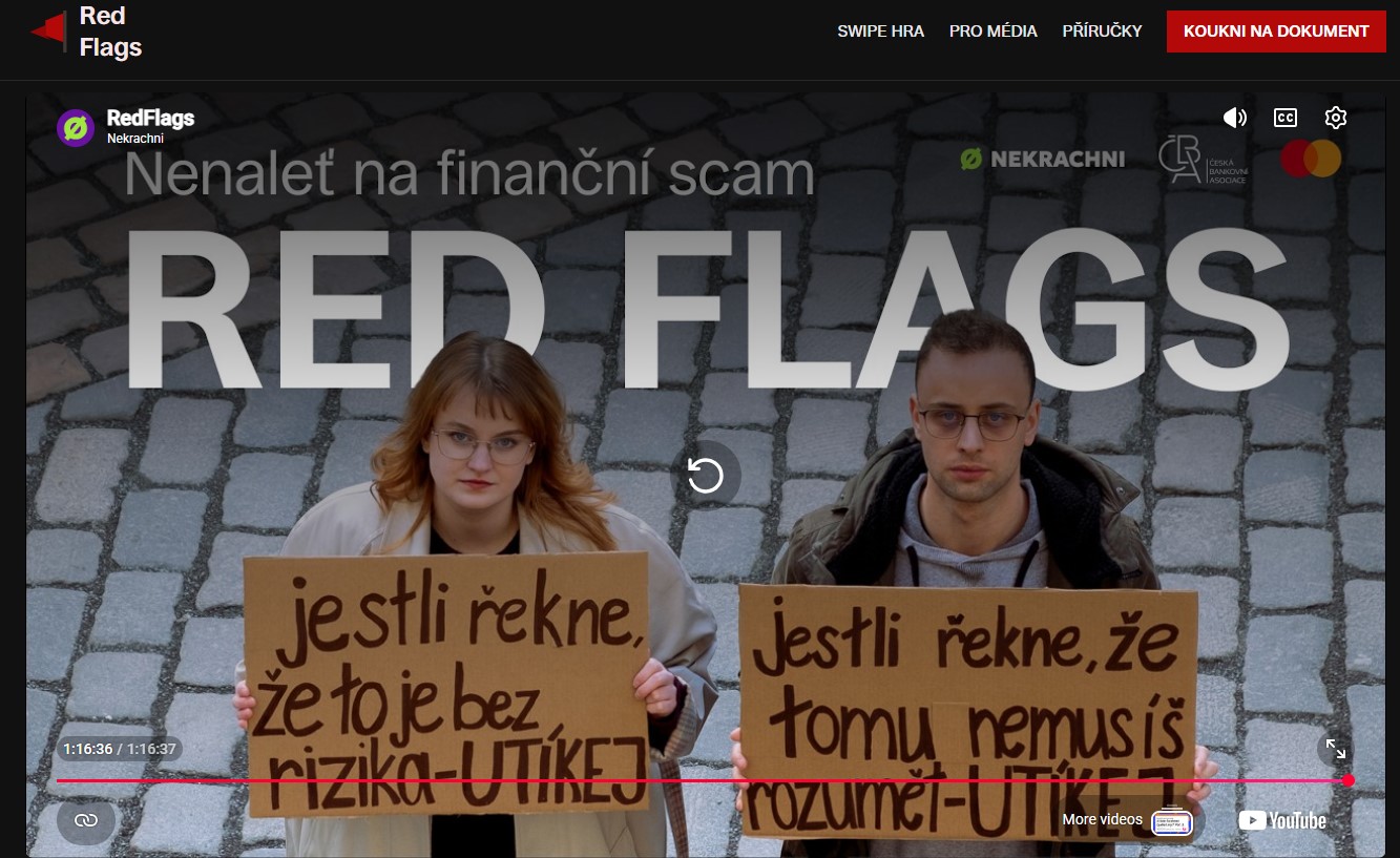 „Klienti jsou v celém to bezpečnostním řetězci nejslabším článkem, který má ale vždy poslední slovo. E-šmejdi si to moc dobře uvědomují a využívají nátlaku a strachu k dosažení svých cílů, ať už jde o získaní citlivých údajů nebo přesvědčení oběti, aby přeposlala peníze na neznámý účet. Proto spouštíme ve spolupráci s našimi partnery novou kampaň Red Flags, která míří na mladé lidi, kteří jsou v kyberprostoru jednou z nejzranitelnějších skupin,“ říká Zdeňka Hildová, ředitelka ČBA Educa.